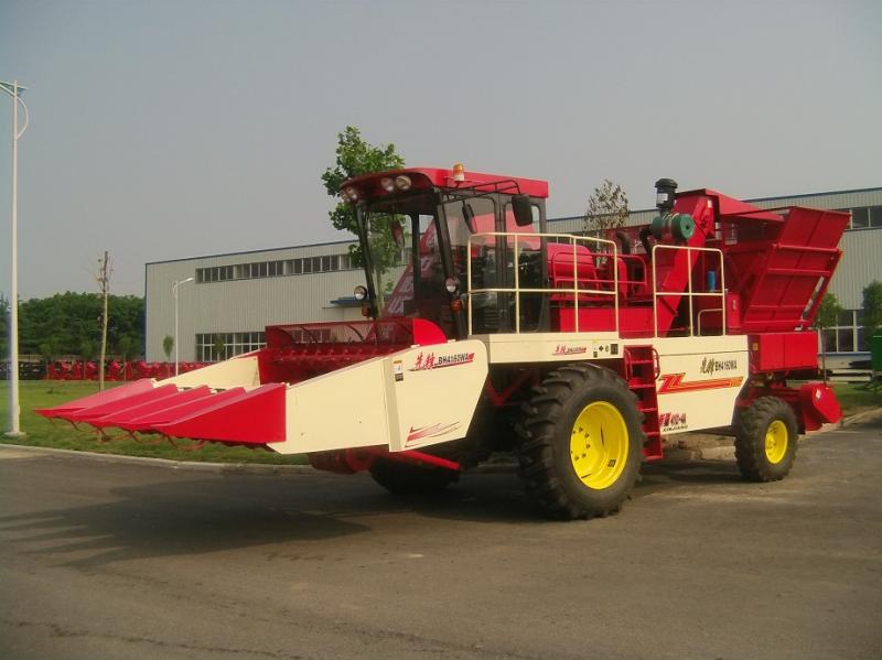玉米聯合收割機結構原理 一、玉米聯合收割機的分類 根據摘穗裝置的配置方式不同,分為臥式摘穗輥機型和立式摘穗輥機型;根據與動力掛接方式的不同,分為牽引式、背負式和自走式機型。 二、玉米聯合收獲機的型號 玉米聯合收獲機的型號主要由牌號、型號和名稱組成。如“春雨4YZ-4型玉米聯合收獲機”,“春雨”是牌號,即商標;“4YZ-4”是型號,在型號中“4”代表農業機械分類,表示收獲機械,“Y”代表“玉米”,即玉字的漢語拼音的首字母。“Z”表示為“自走式”,“4”為主要技術參數,表示每個行程的收獲行數為4;“玉米聯合收獲機”是名稱。 三、玉米聯合收獲機的工作原理 工作時,分禾器將莖稈導入撥禾鏈,在它的撥送和夾持下,經摘穗輥前端的導錐進入摘穗機構,摘下的果穗落落入輸送器,由輸送器輸送到升運器,升運器將果穗升運送到剝皮機,經剝皮機剝皮的玉米被拋送到果穗箱內,玉米苞葉和斷秸稈被排除機外。摘穗后的莖稈被粉碎裝置粉碎后,均勻的拋灑于地表。落入糧倉的果穗堆滿后在有操縱閥和油缸的作用下進行卸糧。 四、主要部件和功用 (一)摘穗裝置 摘穗裝置主要功用是將玉米果穗從莖稈上摘下。主要由分禾器、摘穗輥、摘穗機架、割臺護罩、摘穗齒箱和喂入鏈等組成。 1、扶禾器 在收獲機工作時,扶禾器首先接觸作物前錐部的導板將待收玉米植株扶持、引導至摘穗道內,以便摘穗。 2、摘穗齒箱 摘穗齒箱的功能是將中間軸傳來的動力傳遞給摘穗輥和撥禾鏈。摘穗齒箱主要由箱體、齒輪和安全離合器組成。摘穗齒箱安全離合器的作用是當機器某處阻力過大時,能自動脫離結合,以便保護機器。 3、摘穗輥 摘穗輥是一對表面帶有螺旋凸筋和螺旋爪并且相向旋轉的棍子,玉米的植株從兩個棍子中間的間隙通過,并將玉米果穗摘下。 4、切草刀 切草刀的功用是切斷收獲機作業時纏在摘穗輥上的雜草,防止因摘穗輥上纏草過多而造成摘穗道的堵塞和收獲機工作部件的損壞。 5、撥禾鏈 撥禾鏈的功用是將進入機器的玉米植株向后撥送使之進入摘穗輥工作間隙。撥禾鏈前部設有張緊裝置,用來張緊撥禾鏈。 (二)、輸送裝置 輸送裝置包括水平輸送器和果穗升運器。 1、水平輸送器 水平輸送器位于摘穗臺的后部,將摘穗輥輸送來的果穗送到果穗升運器中。主要由輸送器殼體、輸送鏈鈀、主動軸、被動軸、主動鏈輪、被動鏈輪和張緊機構等部分組成。 2果穗升運器 果穗升運器的主要功能是將由水平輸送器輸送來的果穗輸送到果穗箱內。果穗升運器位于水平輸送器的右側,主要由升運器殼體、輸送鏈鈀、傳動機構和張緊機構等組成。 (三)剝皮裝置